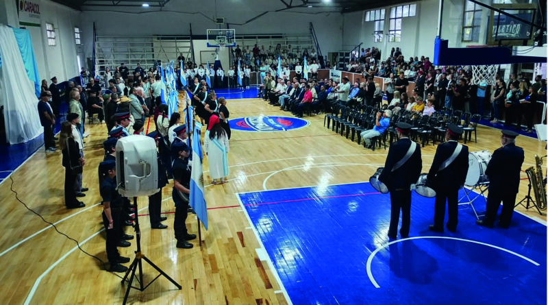 El acto se iba a realizar en el Monumento a los Héroes de Malvinas y por las inclemencias del tiempo se lo trasladó al salón del Club Atlético.