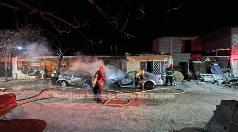 Un peligroso incendio de dos vehículos se produjo en barrio Monte Grande de Río Tercero, en la madrugada de este viernes 15 de agosto.