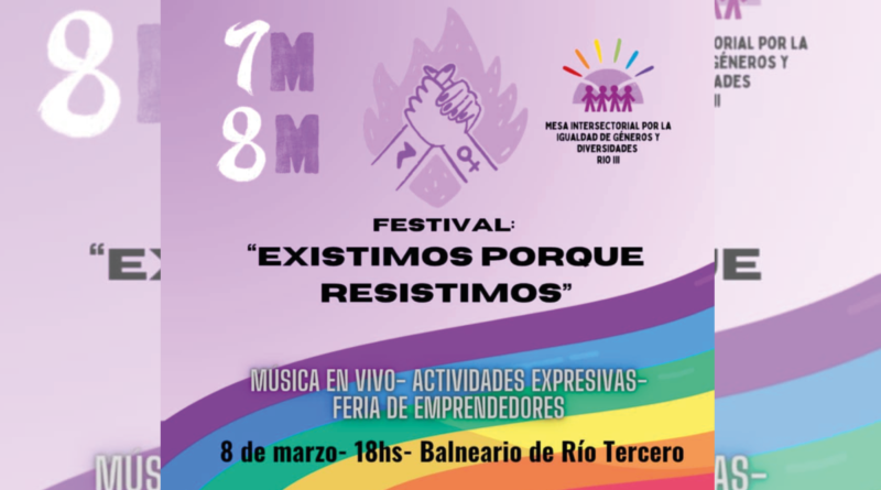 Con motivo de los días de la Visibilidad Lésbica e Internacional de la Mujer, los días viernes 7 y sábado 8 respectivamente, instituciones y organizaciones de Río Tercero invitan al festival artístico Existimos porque Resistimos que se realizará en el balneario municipal este sábado 8 de marzo, a las 18.