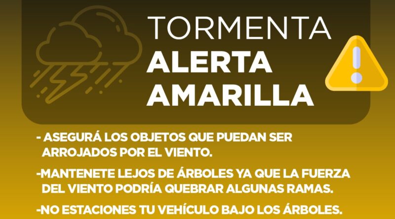La Municipalidad de Río Tercero difundió un alerta meteorológico de nivel amarillo para Río Tercero y alrededores que emitió el Servicio Meteorológico Nacional. Se prevén tormentas fuertes, con lluvias intensas, ráfagas de viento y posible caída de granizo.