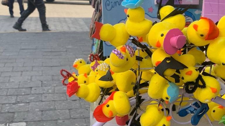 La moda de expresar felicidad con patitos amarillos en la cabeza;¿llegará a la ciudad?