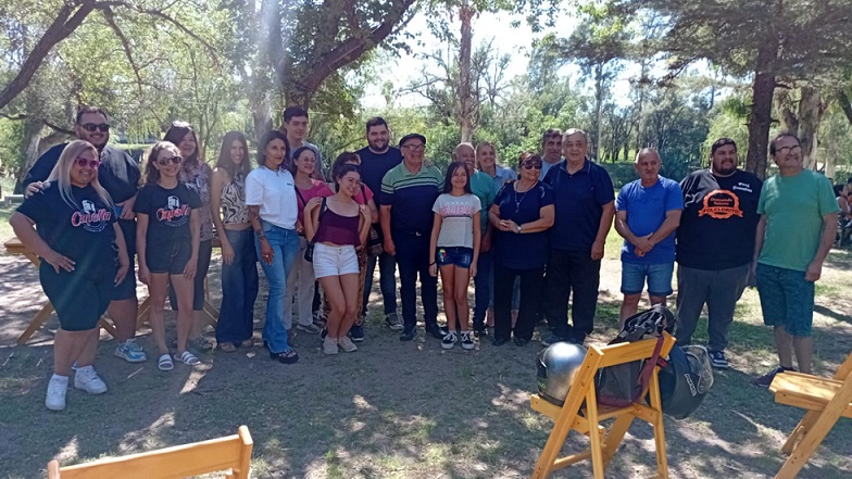 Foto: Mario Trecek y Lautaro Villafañe, rodeado por artistas que formarán parte del programa de espectáculos del Verano Activo en el Balneario de Río Tercero
