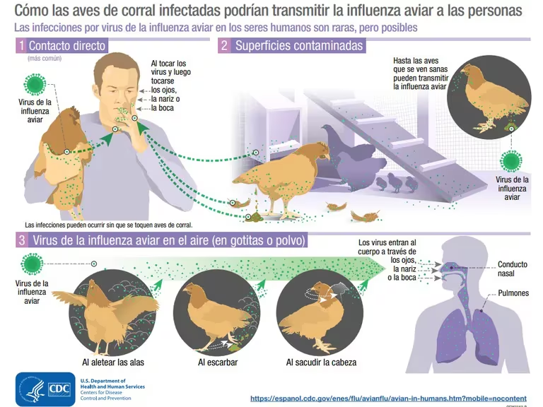 Además, “los viajeros a países con brotes conocidos de influenza animal deben evitar las granjas, el contacto con animales en mercados de animales vivos, ingresar a áreas donde los animales puedan ser sacrificados o el contacto con superficies que puedan haber sido contaminadas con heces de animales. Los viajeros deben lavarse las manos frecuentemente con agua y jabón y seguir buenas prácticas de seguridad e higiene alimentaria. Si personas infectadas de las zonas afectadas viajan al extranjero, su infección puede detectarse en otro país durante el viaje o después de su llegada. Si esto ocurre, se considera poco probable una mayor propagación a nivel comunitario, ya que este virus no ha adquirido la capacidad de transmitirse fácilmente entre humanos”.